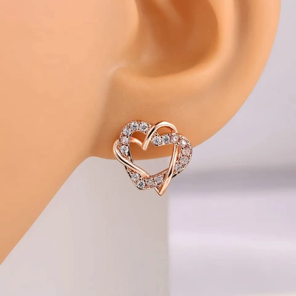 Chic heart studs with CZ stones, shipped fast, ideal gift for girls.