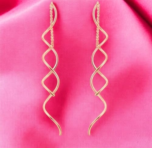 Nilu’s Collection Spiral Threader Earrings for Women, Twisted Spiral Drop Dangle Earrings, Unique Minimal Everyday Earrings – Fast Shipping to USA & Canada