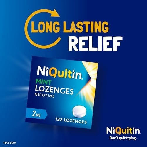 NiQuitin Mint 2 mg Lozenges – Effective Smoking Craving Relief – 132 Lozenges – Long-Lasting Effect – Reduce and Quit Smoking Aid – Fast Shipping to USA & Canada