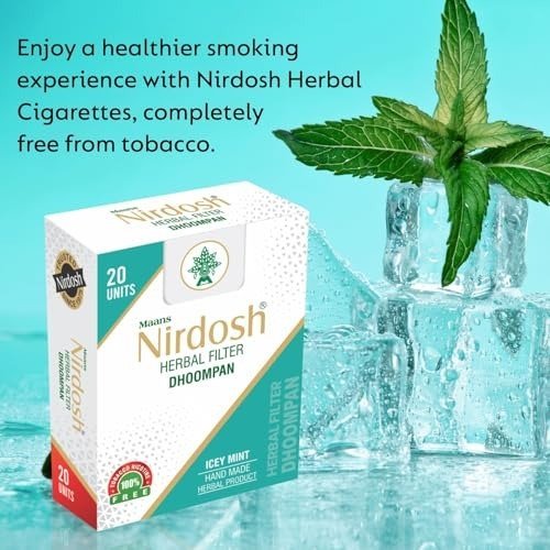 Nirdosh Herbal Icey mint Smoke | 100% Natural Tobacco-Free Alternative | 20 Ayurvedic Cigarettes | Nicotine-Free Wellness Choice – Fast Shipping to USA & Canada