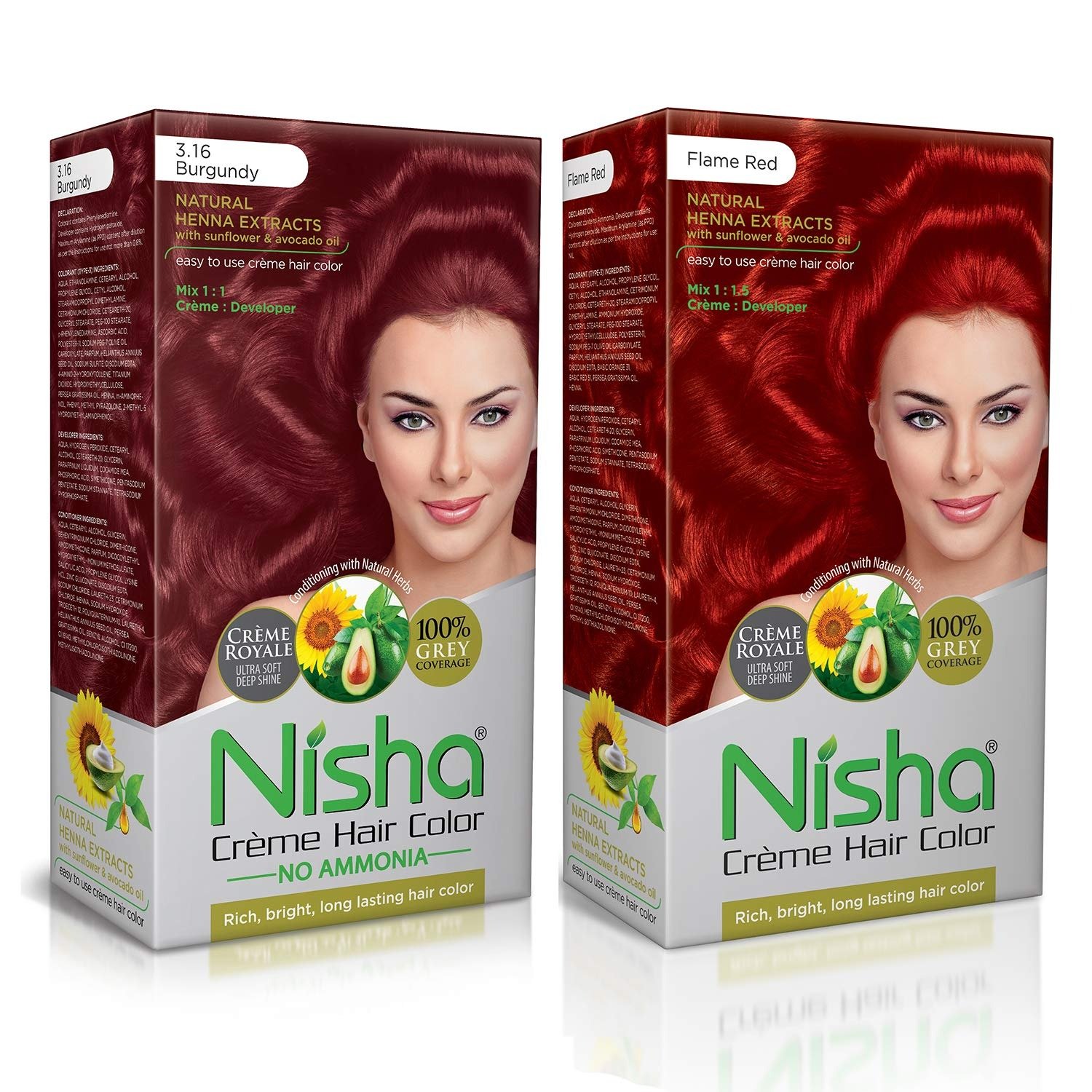 11 reviews for Nisha Cream Hair Color Combo Pack, Burgundy and Flame Red, Permanent Hair Colour for Women and Men – Fast Shipping to USA & Canada