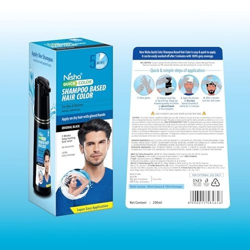 Nisha Quick 5 Minutes Hair Color Shampoo Black | 5 Weeks Long Lasting Shampoo Hair Colour for Women and Men (180ml Bottle, Original Black) – Fast Shipping to USA & Canada