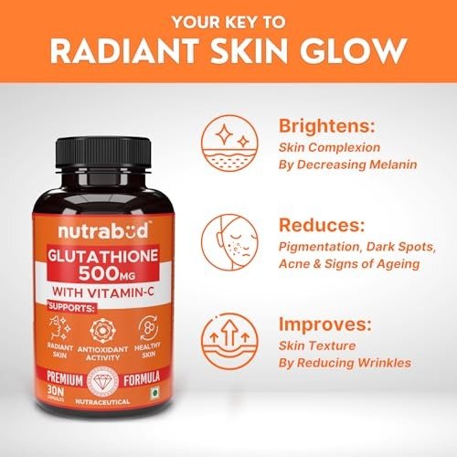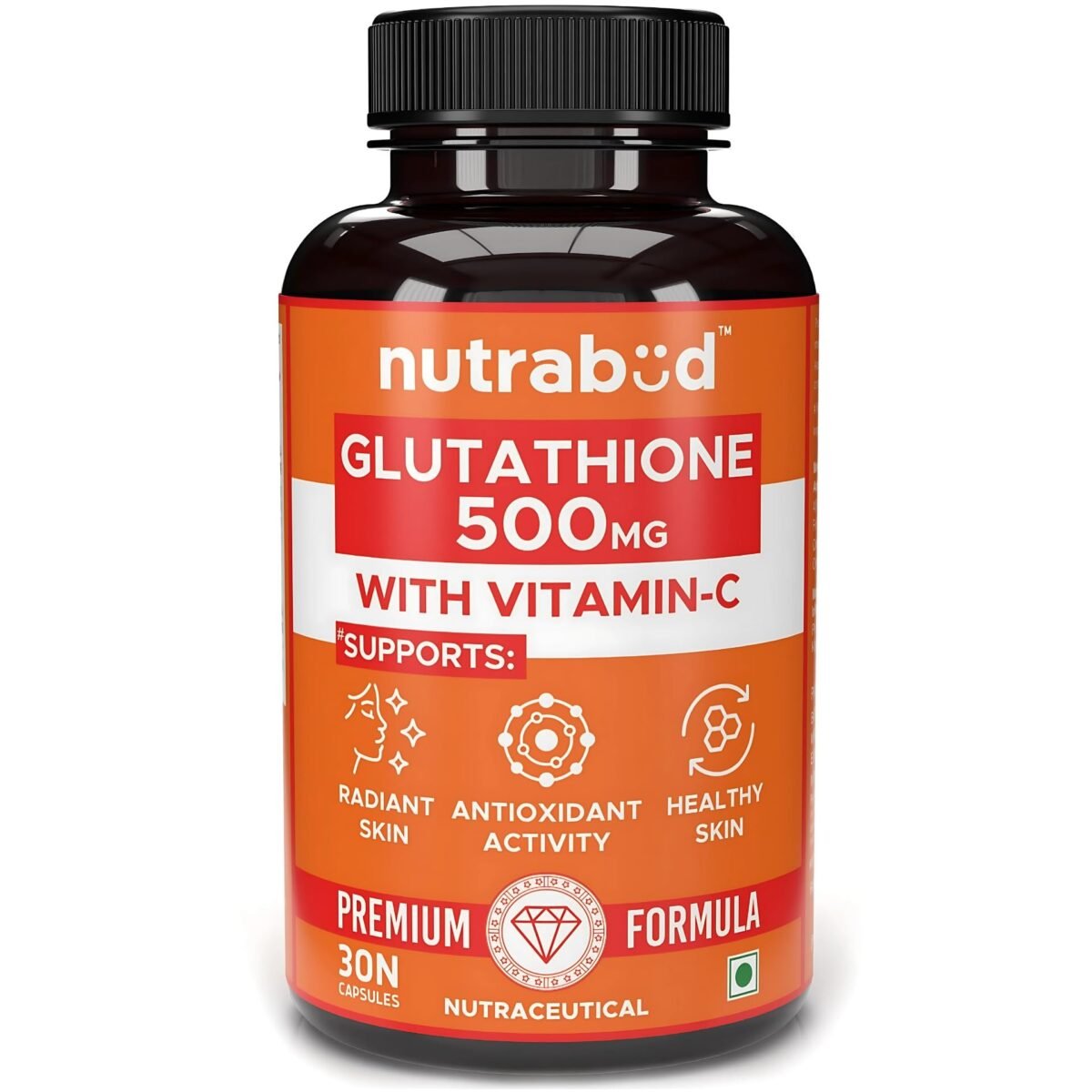 Nutrabud Glutathione Tablets 500mg with Vitamin-C – 30 Veg Capsules – Supports Radiant Skin Glow for Women, Men (30 Count (Pack of 1), Unflavoured) – Fast Shipping to USA & Canada