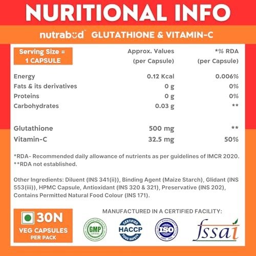 10 reviews for Nutrabud Glutathione Tablets 500mg with Vitamin-C – 30 Veg Capsules – Supports Radiant Skin Glow for Women, Men (30 Count (Pack of 1), Unflavoured) – Fast Shipping to USA & Canada