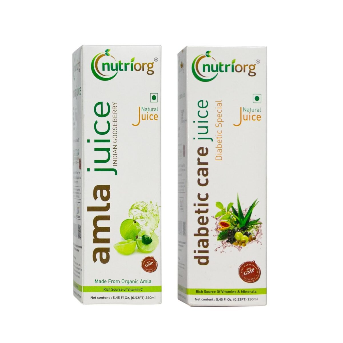 Nutriorg Diabetic Care & Amla Juice 500ml (Pack of 2 * 250ml), Maintains Blood Sugar Levels – Fast Shipping to USA & Canada
