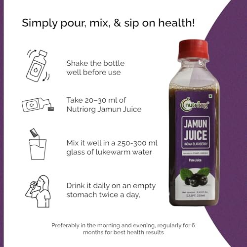 10 reviews for Nutriorg Jamun Juice | 250 ml | Pure Jamun Juice for Diabetes Care | Controls Blood Sugar Levels | Blood Purification | No Added Sugar, Preservatives, or Colors – Fast Shipping to USA & Canada
