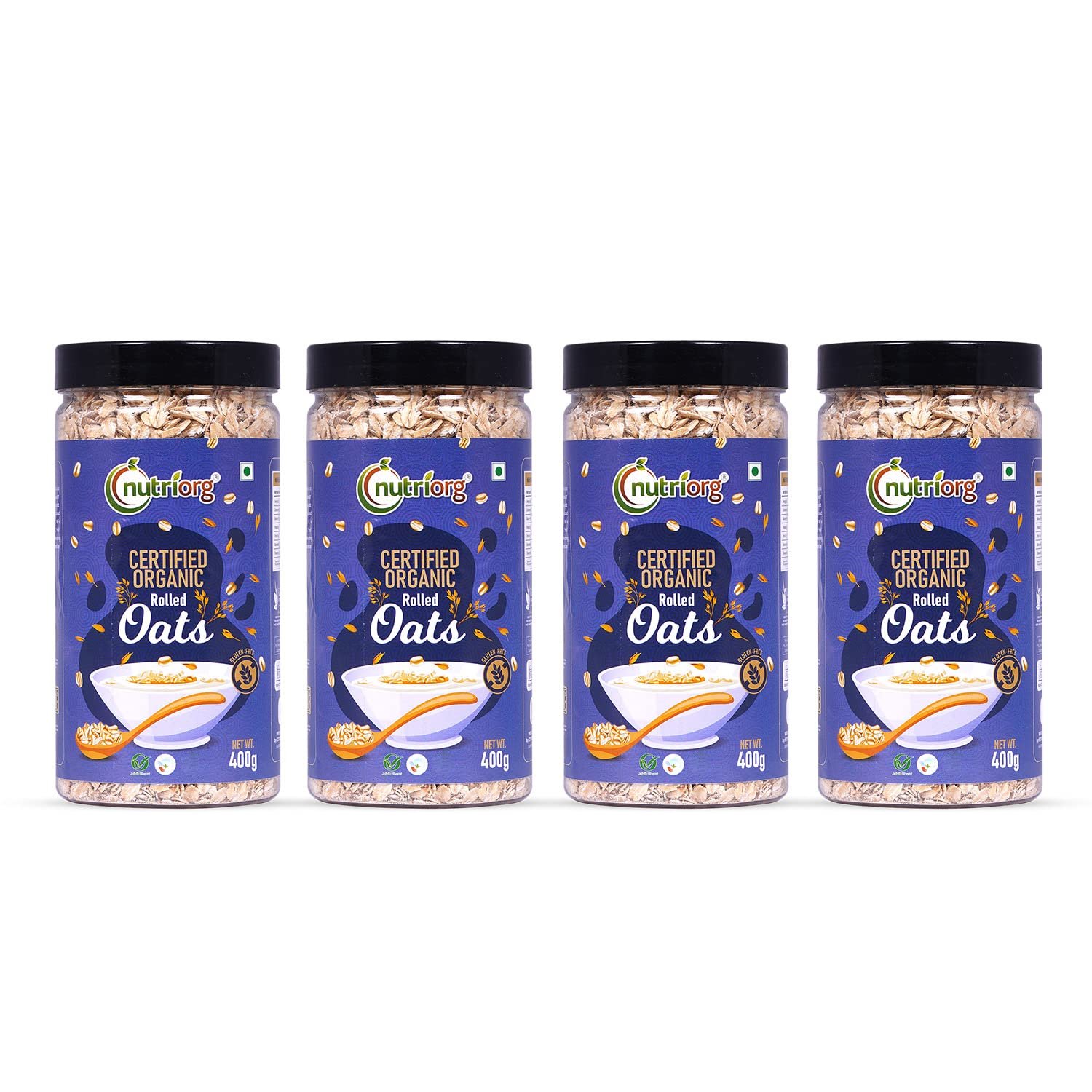 Nutriorg Organic Rolled Oats 1.6 Kg (Pack of 4x400g) | Gluten Free Oats | Wholegrain Oats | High Fiber & Protein-Rich Oats | Ideal for Weight Loss & Breakfast | 100% Natural Oats – Fast Shipping to USA & Canada