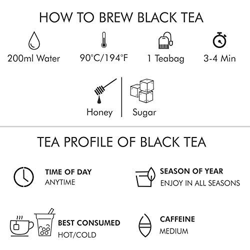 - SIMPLE BREWING INSTRUCTIONS – To prepare, simply immerse a tea bag in 200 ml of hot water (90?C) and steep for 3-4 minutes. Enjoy it hot or as iced tea. Sweeteners or honey can be added to taste, and milk can be incorporated into Assam and Indian Masala teas.