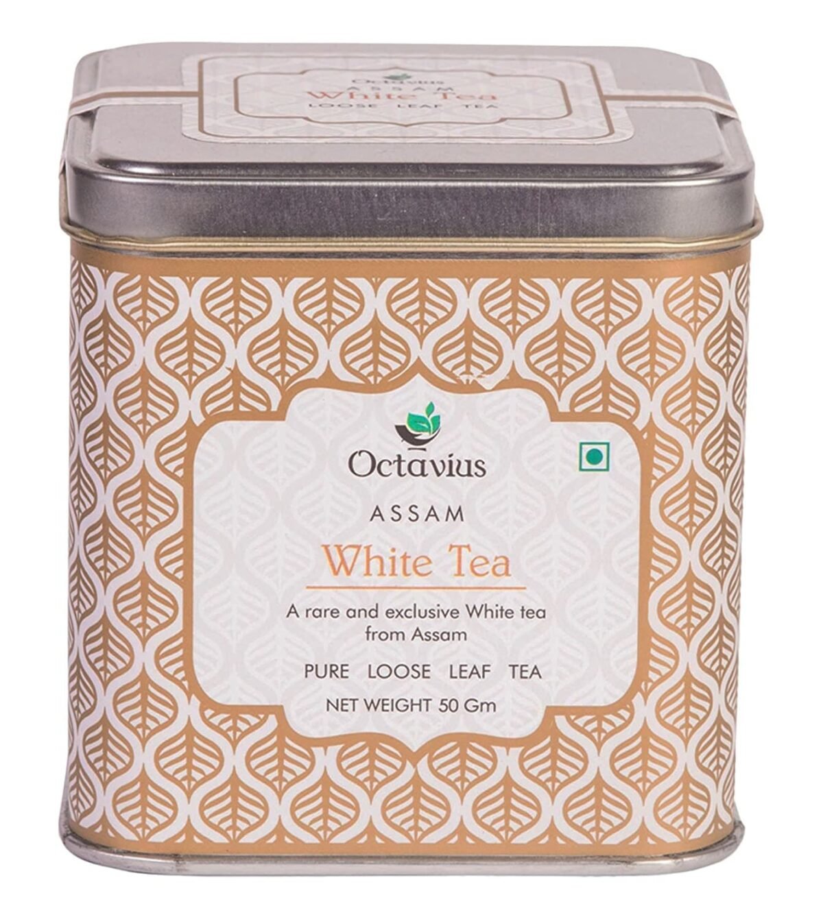 Octavius Assam White (Silver Needle) Loose Leaf Tea | Low Caffeine | 50 Gms (25 Cups) – Fast Shipping to USA & Canada