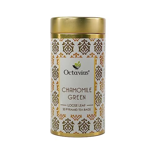 Octavius Chamomile Green Tea-|Superior Loose Leaf Flavour Experience with Absolute Ease|Loaded with Antioxidants | Calming & Soothing Tea| Enhances Mood & Cognition|Reduces Stress|20 Pyramid Tea Bags – Fast Shipping to USA & Canada