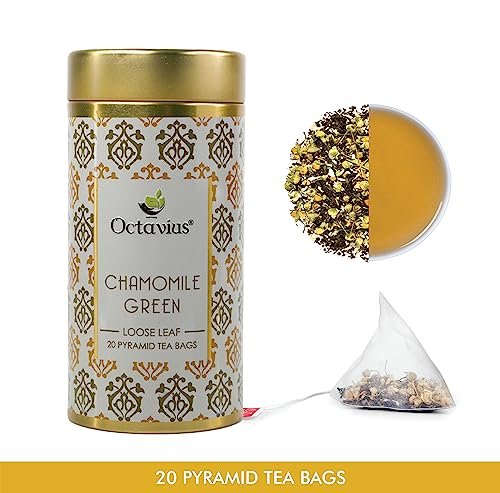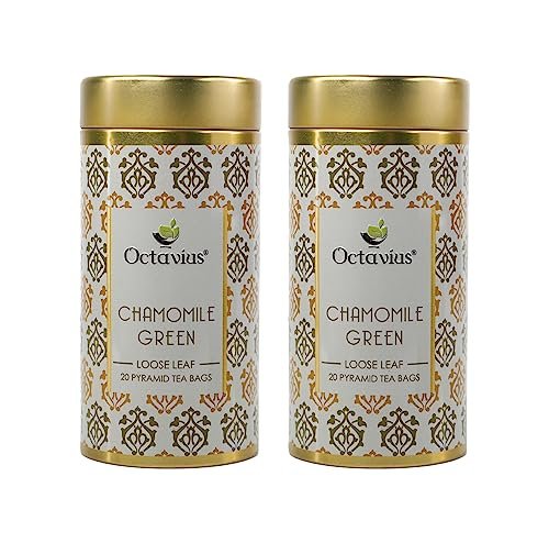 Octavius Chamomile Green Tea|Superior Loose Leaf Flavour Experience with Absolute Ease|Loaded with Antioxidants | Calming & Soothing Tea| Enhances Mood & Cognition| 20 Pyramid Tea Bags (Pack of 2) – Fast Shipping to USA & Canada