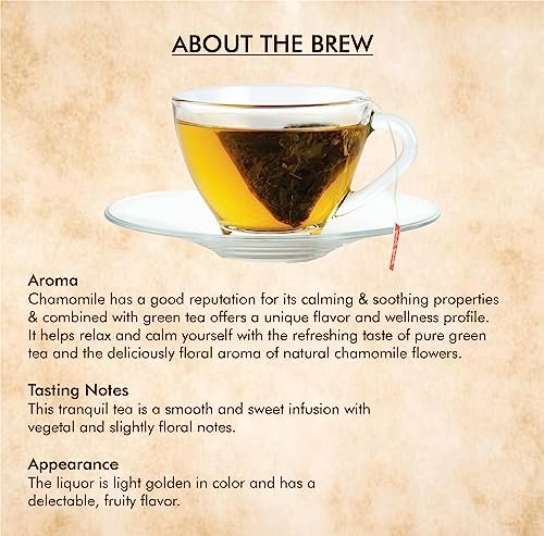 10 reviews for Octavius Chamomile Green Tea|Superior Loose Leaf Flavour Experience with Absolute Ease|Loaded with Antioxidants | Calming & Soothing Tea| Enhances Mood & Cognition| 20 Pyramid Tea Bags (Pack of 2) – Fast Shipping to USA & Canada