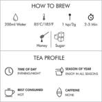 - SIMPLE TO PREPARE – Savor the exceptional quality of fresh loose leaf tea. Simply add one teaspoon (2 grams) of tea to a cup of 200 ml hot water (85?C) and steep for 2-3 minutes (adjust steeping time to your preference). Serve hot, without milk, and sweeten with honey or a sweetener if desired.