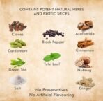 - VITAMINS RICH: A delightful fusion of Ayurvedic herbs and spices combined with Green Tea, designed to eliminate toxins from your body. This blend is also rich in essential nutrients such as Vitamins A, C, K, B3, B1, and B6.