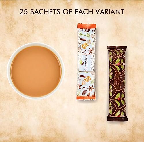 Octavius | Indian Masala & Coffee 2 in 1 Premix Tea & Coffee -50 Pouches | Economy Pack | Readymade Tea Mix | Ready Tea & Coffee | Premix Tea Powder | Instant Tea | Tea Premix | Economy Pack -(15Gm X 50 Sachets) – Fast Shipping to USA & Canada