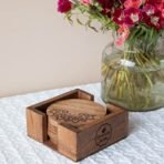 10 reviews for Octavius Natural Wood Handcrafted Tabletop Coasters – Set of 4 with Decorative Wooden Holder| Pure Sheesham Wood Coaster Set | Use for Tea Coffee Cups Mugs Beer Cans Bar Glass | Size – Diameter 10 cm – Fast Shipping to USA & Canada