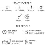 - SIMPLE TO PREPARE – Savor the exceptional quality of garden-fresh loose leaf tea. Simply add one teaspoon (2 grams) of tea to a cup of 200 ml of freshly boiled water (around 90?C) and steep for 5-6 minutes (adjust steeping time according to your taste). Strain and serve hot. Herbal teas do not become bitter, allowing for longer steeping to extract more flavor.
