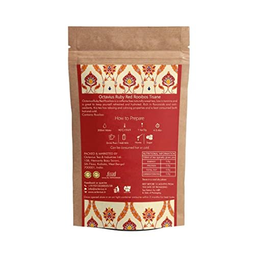 Octavius | Ruby Red Rooibos Tea – 100 Gm (50 Cups) | 100% Natural | Caffeine Free – Herbal Tea | Loose Leaf | Red Tea | South Africa Tea | Antioxident-Rich | Boost Immunity | Helps in Weight Loss – Fast Shipping to USA & Canada