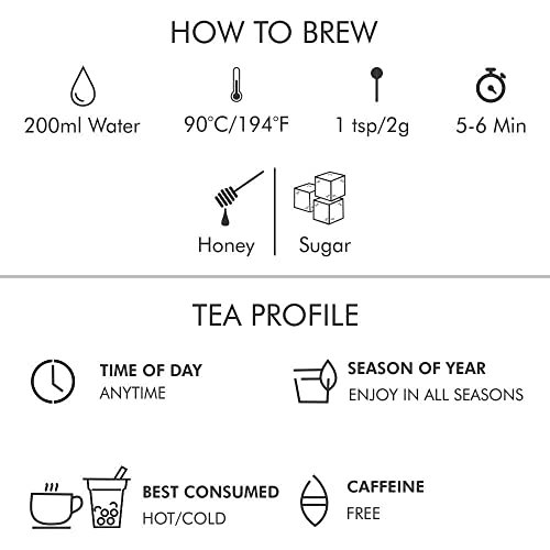 - SIMPLE TO PREPARE – Savor the exceptional quality of garden-fresh loose leaf tea. Simply add one teaspoon (2 grams) of tea to a cup of 200 ml of freshly boiled water (around 90?C) and steep for 5-6 minutes (adjust steeping time according to your taste). Strain and serve hot. Herbal teas do not become bitter, allowing for longer steeping to extract more flavor.