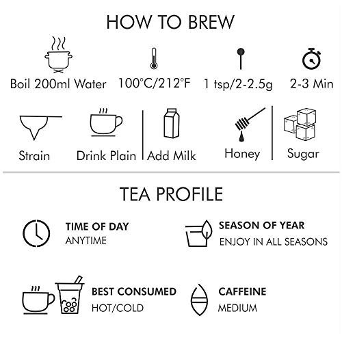 • SIMPLE TO BREW – Enjoy the freshness of loose leaf teas with the ease of single-serve pyramid tea bags. Simply immerse a pyramid teabag in 180ml of hot water (85?C) and steep for 1-2 minutes (longer steeping yields a stronger brew). Serve hot or as iced tea. Best enjoyed without milk, with almond slivers and honey added to taste.
