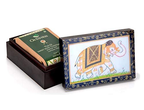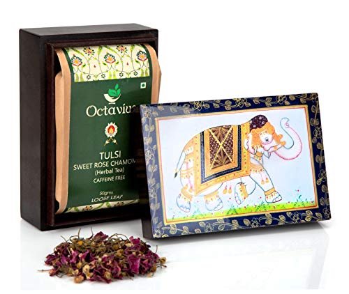 10 reviews for Octavius Tulsi Rose Chamomile Tisane Whole leaf tea in Darkwood Handcrafted Wooden gift box with Traditional Indian Elephant Pattern On The Lid | Caffeine Free | – 50 Gms (50 Servings) – Fast Shipping to USA & Canada