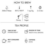 - SIMPLE TO BREW – Savor the exceptional quality of garden-fresh loose leaf tea. Simply add one teaspoon (2 grams) of tea to 200 ml of hot water (85?C) and steep for 2-3 minutes (adjust steeping time to your preference). Serve hot, and enjoy without milk. Sweetener or honey can be added according to taste.