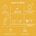 - SIMPLE TO PREPARE – To brew, add 1/2 teaspoon of this Kadha blend to 300 ml of boiling water. Allow it to simmer on low heat for 10 minutes, until the liquid reduces to 200 ml. Strain thoroughly, and feel free to sweeten with jaggery, honey, sugar, or lemon juice to suit your preference. For optimal results, serve hot and enjoy without milk.