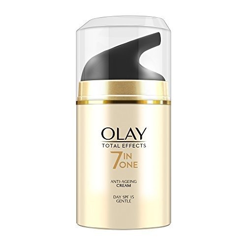 Olay Total Effects 7-in-1 Anti-Aging Gentle Cream SPF 15 (50g) delivers the advantages of seven anti-aging treatments in a single bottle. This cream addresses fine line reduction, provides nourishing hydration, enhances skin tone, offers gentle exfoliation, refines pores, delivers antioxidant protection, and provides a subtle lifting effect.