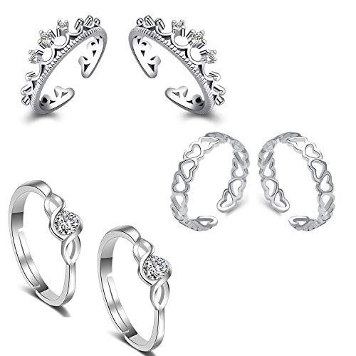 Om Jewells White Alloy Rhodium Designer Adjustable Toe Ring for Women – Combo of 3 – Fast Shipping to USA & Canada