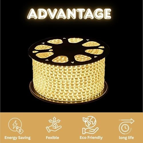 One94Store 22 Meter LED Rope Light – 2835 LED 120 LEDs/M Waterproof Decorative Strip Light for Ceiling Cove, Diwali, Christmas, Balcony, Home & Outdoor Decoration (Warm White) – Fast Shipping to USA & Canada