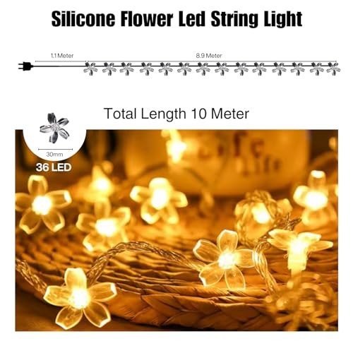 One94Store 36 Flower LED Curtain String Lights – 12 Meter Silicon Flower Fairy Lights for Window, Festival, Diwali, Christmas, Wedding, Party & Home Decoration (Made in India, Warm White) – Fast Shipping to USA & Canada