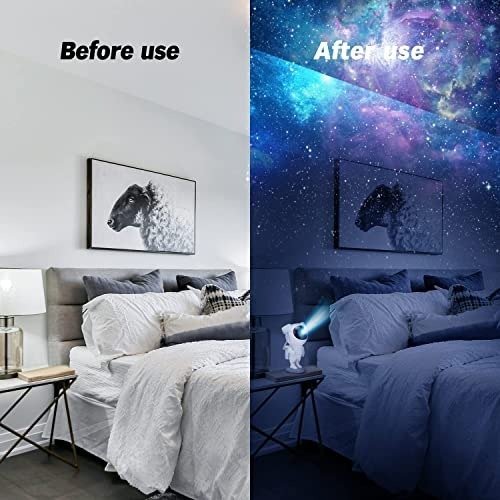 Immerse yourself in a breathtaking nebula and star projection featuring vivid hues, perfect for infusing bedrooms, gaming areas, and home interiors with an enchanting atmosphere. - Customizable Projection with 360? Rotating Astronaut Head
