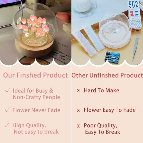 - 4. Elegant Tulip Blossom Design with Gentle LED Illumination: Showcasing a crystal-inspired glass sphere filled with lifelike tulip blooms, this piece radiates a soft, inviting LED glow-ideal for setting a tranquil, romantic, or serene atmosphere.