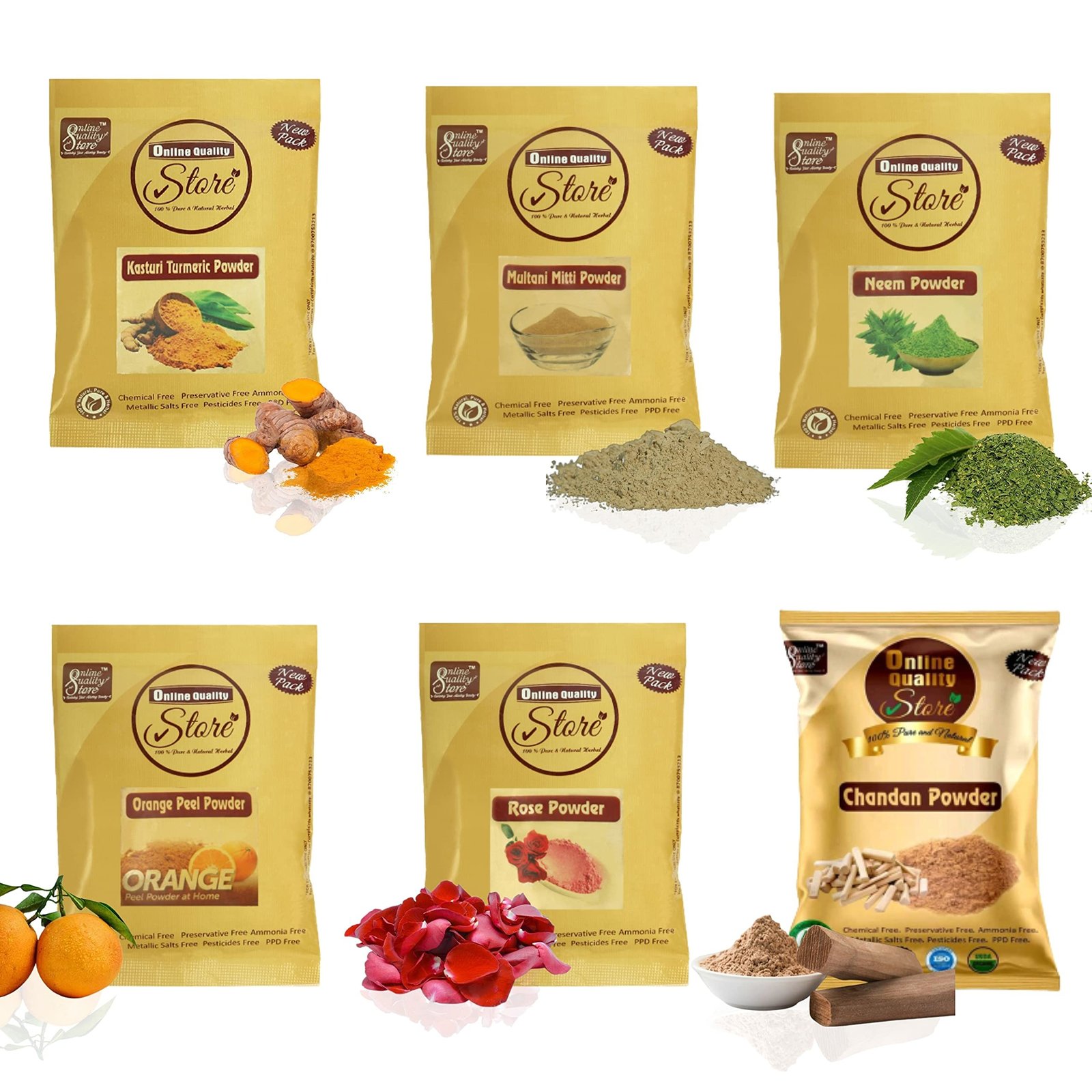 Online Quality Store Multani Mitti + Kasturi Turmeric + Orange + Neem + Chandan + Rose Combo (6 x 50g, 300g) – Fast Shipping to USA & Canada