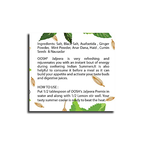 - ENHANCE FLAVOR: – Using our Jal Jira masala will captivate your senses with its delightful fragrance and aroma. Sprinkle the OOSH jal jeera powder on your mundane meals to transform them into something irresistible.