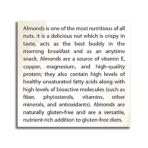 These almonds are fresh, crunchy, and perfect for adding to cereals or enjoying on their own.