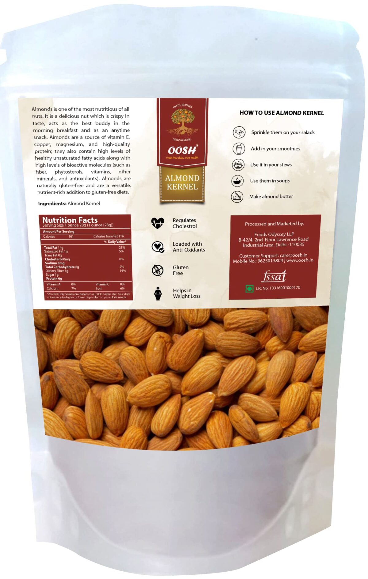 OOSH Premium Almond Kernel | Dry Fruits | Pouch Packing 600g – Fast Shipping to USA & Canada