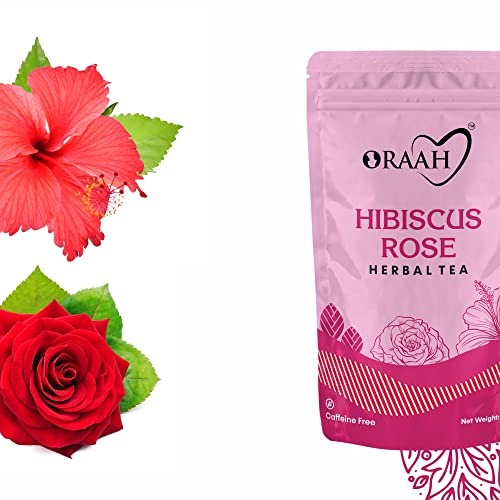Oraah Hibiscus Rose Herbal Tea- 100gms | 100% Natural Ingredients | Calming Hibiscus & Fragrant Rose | Nourishing, Hydrating, Alleviates Stress, Promotes Better Sleep – Fast Shipping to USA & Canada