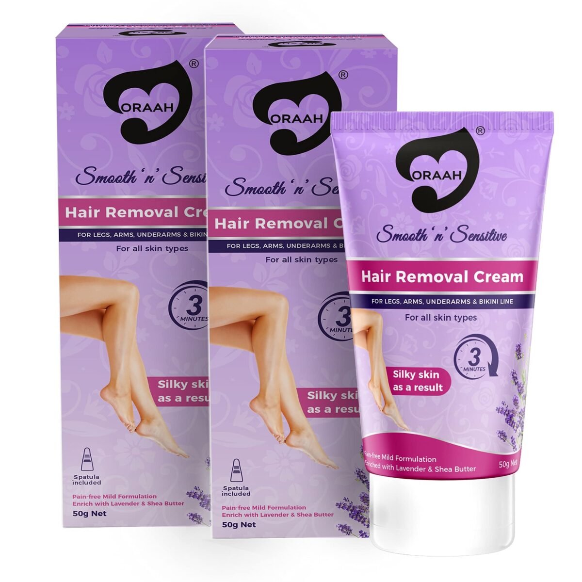 ORAAH Smooth n Sensitive Hair Removal Cream For Women | Natural Painless Removal For All Skin Types With Lavender -50G ? (Pack Of 2) – Fast Shipping to USA & Canada