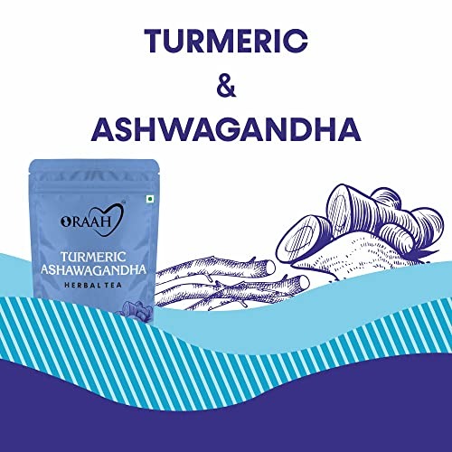 Oraah Turmeric Ashwagandha Green Tea for Immunity Boosting & Improved Memory, Made with 100% Whole Leaf, Natural Ashwagandha & Turmeric – 100gms – Fast Shipping to USA & Canada