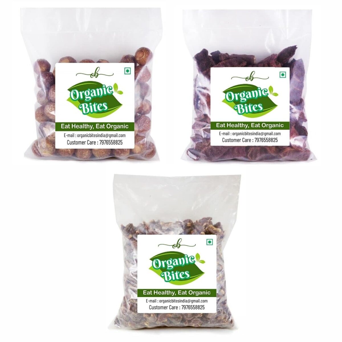 Organic Bites Premium Whole Dried Amla, Reetha, and Shikakai | Raw Reetha for Hair | Aritha | Reetha | Ritha | Soapnuts (Sapindus Mukorossi) | Indian Gooseberry | Dried Shikakai | Acacia Concinna | Hair Treatment Pack