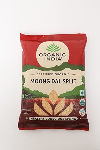 ORGANIC INDIA Moong Dal is made from certified organic, unpolished, de-husked Moong lentils sourced from organic farms in India. Packed with nutrition, moong dal dhuli is one of the healthiest and easy-to-digest dals and is naturally rich in nutrients containing protein, fibre, vitamins, and minerals. Make a wholesome khichadi or a comforting dal with rice and rotis.