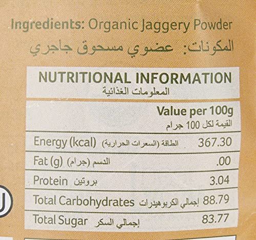 - ORGANIC INDIA Jaggery Powder is produced from certified organic sugar cane sourced from organic farms. It is devoid of pesticides and chemical additives, and it naturally provides essential vitamins and minerals. This delightful and nutritious substitute for refined sugar can be used to elevate the flavor of tea, coffee, and various other drinks.