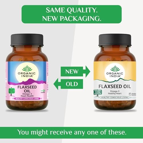 ORGANIC INDIA Flaxseed Oil 60 veggie transparent capsule, A Rich source of the mineral antioxidant manganese, the polyphenols in flaxseed provide measurable antioxidant benefits, high omega 3 fatty acids, a good amount of certain B vitamins (B1 & B6 especially), magnesium, phosphorus, selenium, Iron, potassium, copper and zinc. The health benefits of flax seeds primarily comes from the high omega 3 fatty acids content and unique fiber-related polyphenols called lignans, providing an abundance of antioxidants and plant phytoestrogens that promote digestive and cardiovascular health and reduce the risk of oxidative stress. Flaxseed is a dietary key to keep the heart healthy without using chemical based supplements and medicines. This property is attributed especially to the rich Omega-3 fatty acid content of ALA’s. In addition flax seed oil also keeps the joints healthy, prevents and heals joint pain, and softens stool for effortless evacuation. Ground flaxseeds are great gluten free addition to recipes that also supports healthy skin, hair and nails