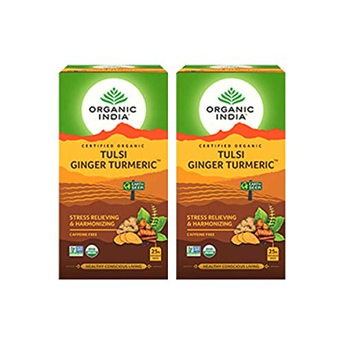 Organic India Tulsi Ginger Turmeric Tea – 25 Infusion Bags – (Pack of 2) – Fast Shipping to USA & Canada