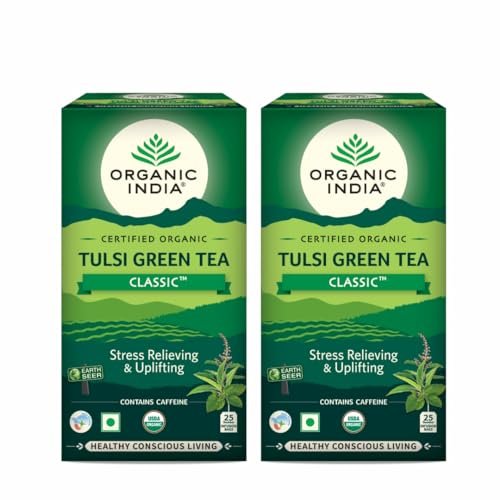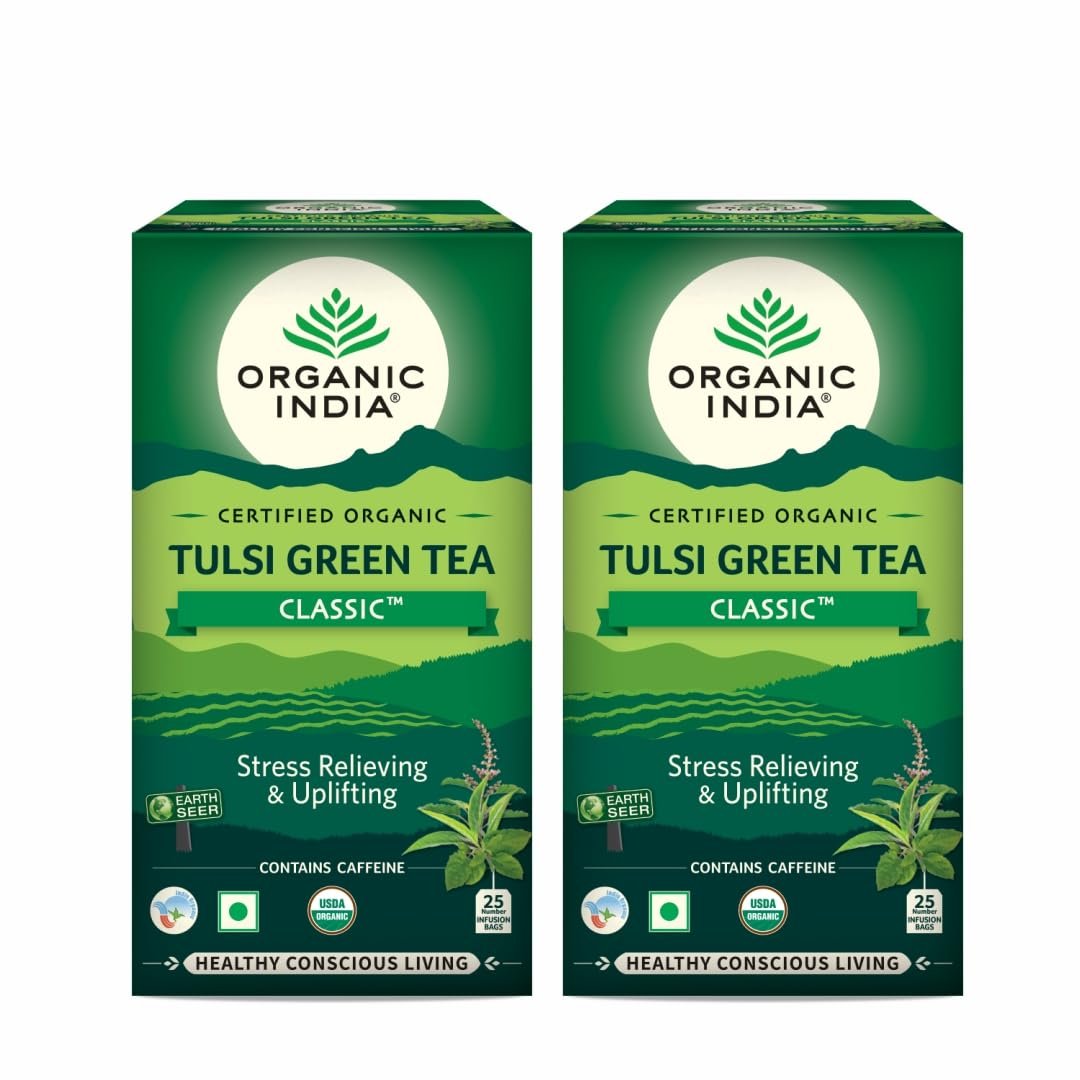 ORGANIC INDIA Tulsi Green Tea Classic, 25 Infusion Bags (Pack Of 2) – 3 Gm – Fast Shipping to USA & Canada