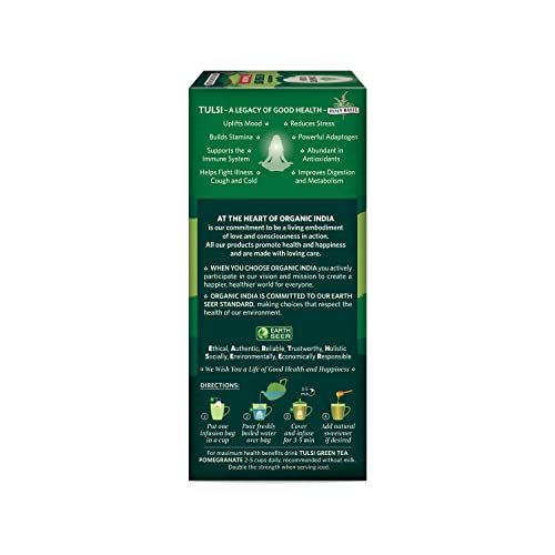 ORGANIC INDIA Tulsi Green Tea,Pomegranate,25 Tea Bags,2 Grams – Fast Shipping to USA & Canada