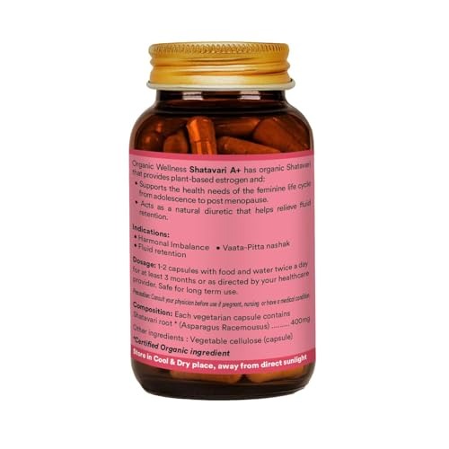Organic Wellness Shatavari Capsule|| Supports Women’s Health & Reproductive Health II Supplement for Hormonal Balance || Helps Relieve Fluid Retention Organic Wellness Shatavari A+ (90 Capsules Pack-1)