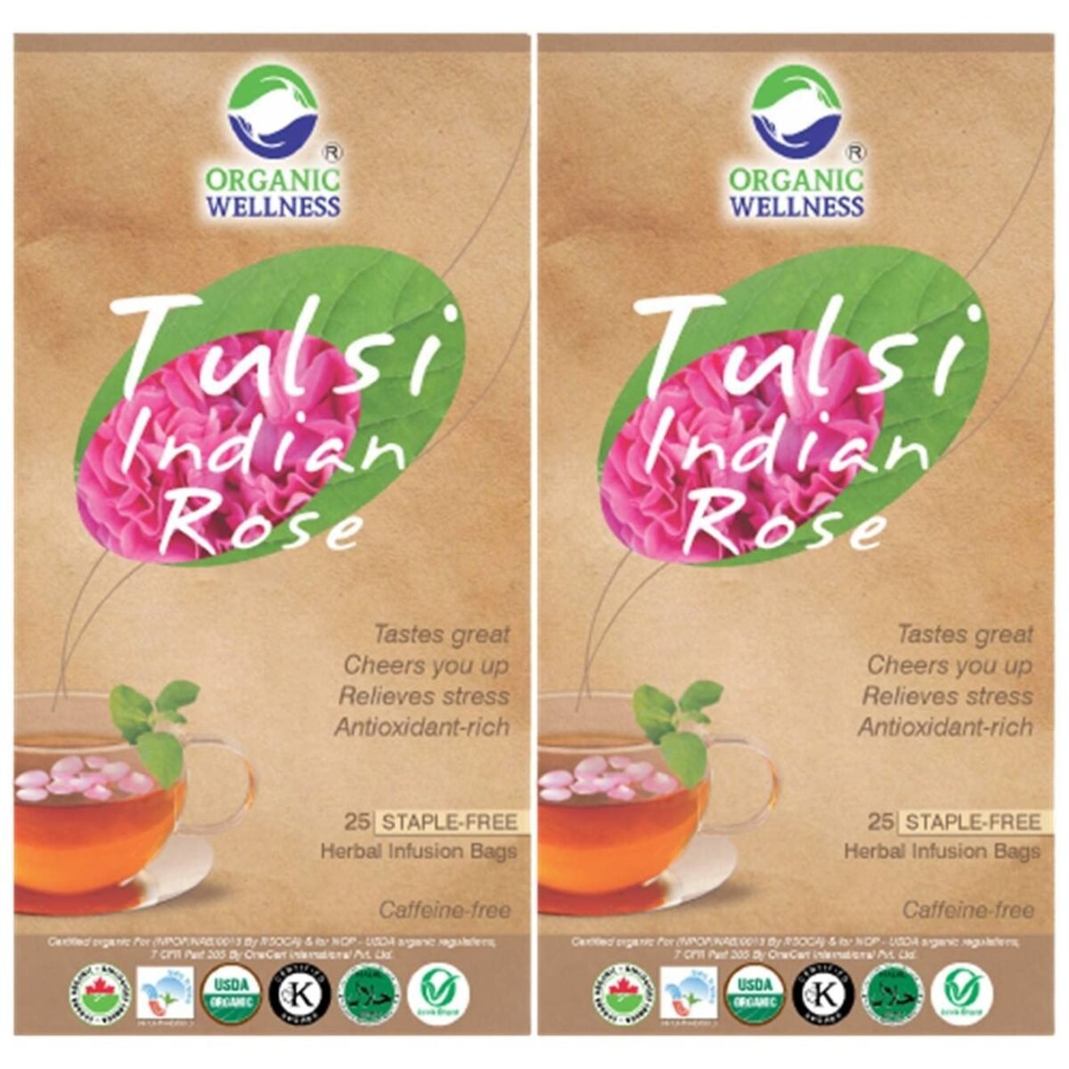 Organic Wellness Tulsi Indian Rose Tea | 25 Tea Bags, Set of 2 – Fast Shipping to USA & Canada