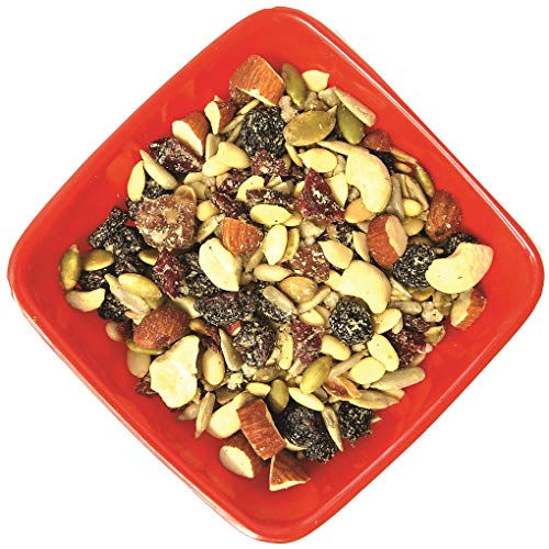 A nutritious blend of super seeds, nuts, and berries, known as trail mix, features: roasted pumpkin seeds, roasted sunflower seeds, roasted watermelon seeds, roasted almonds, roasted cashews, cranberries, black raisins, dates, coconut powder, gum arabic, and exquisite spices. This mix is made from 100% freshly roasted ingredients, offering a natural flavor and numerous health advantages. It is rich in fiber, antioxidants, omega fats, and packed with protein. The synergy of fiber and protein works to keep you feeling full throughout the day, effectively managing hunger and cravings.